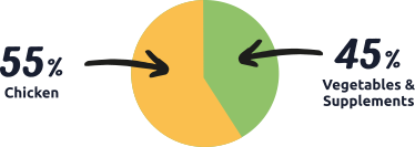 Chicken 55% (including 31% Freshly Prepared Chicken, 21% Dried Chicken & 3% Chicken Stock);