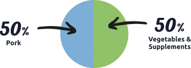 Pork (50%) (30% Freshly prepared, 18% dried, 2% pork stock);